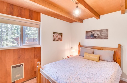 Nestled among towering pines, this rustic 2-bedroom, 1-bathroom vacation rental cabin is your perfect Arnold escape. After a day of exploring the spectacular Calaveras Big Trees State Park, prepare a tasty meal with the gas grill on the deck. This property also offers a well-stocked kitchen, an iMac computer for catching up on remote work, and a pass to Big Trees Park's pools! Top off the evening with a cozy movie night by the wood-burning stove.