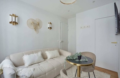 Welcome to our extremely well-located, elegant, warm, and modern studio, fully equipped. Located just steps from the prestigious Place des Vosges, surrounded by trendy boutiques, quaint cafes, and exquisite restaurants, as well as numerous cultural sites. Our apartment, nestled in a typically Parisian building with its period moldings and fireplaces, offers the ideal setting for a successful stay for two.