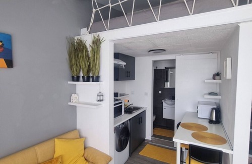 Студиото е компактно, но проектирано с мисъл за вашия пълен комфорт. То е напълно оборудвано с всичко необходимо, за да се почувствате като у дома си: