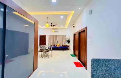 Unwind in Udaipur at this lovely Swimming pool villa. Nestled in the heart of the city, this marvelous property offers a tranquil escape for guests. With 2 adorable bedrooms featuring comfortable queen beds, you'll have a restful night's sleep and a fantastic private pool area. The villa boasts modern amenities like Wi-Fi, AC, fully equipped kitchen with microwave, Juicer, stove etc. and a hair dryer. The 2 bathrooms are equipped with refreshing showers and hair dryers. Additionally, there is an additional space—a cozy living room with a sofa bed. A great place to call homebase while you're away, we hope you enjoy your stay.