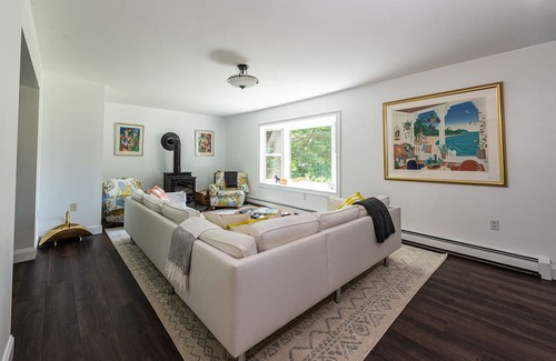 Relax with the whole family at this peaceful country home in East Chatham. Set in a lush, expansive setting on 4 acres with a large pool, fire pit, decorated with tasteful Scandinavian interior.