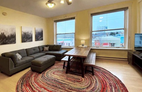 Chief Joseph Suite is a 704 Sq Ft upstairs apartment, located in the historic Burnaugh Buildingwith modern upgrades andamenities! Large Flat screen television in the great room, comfortable couch, picnic style dining table and complete large kitchen make this the ultimate vacation hangout!
