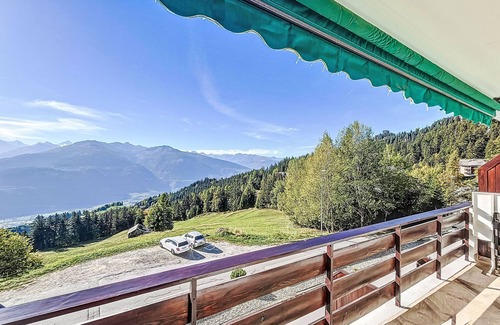 "Clairière des Barzettes C 12", 3-room apartment on 3rd floor. Spacious, comfortable and cosy furnishings: living/dining room with cable TV. Exit to the balcony. 1 room with 1 french bed (140 cm, length 200 cm). 1 room with 1 double fold-away bed (2 x 90 cm, length 190 cm). Kitchen (3 hot plates, oven, dishwasher, toaster, kettle, microwave, electric coffee machine, raclette grill, fondue Set (cheese)). Bath/WC, shower/WC. South facing position. Marvellous view of the mountains, the valley and the countryside. Facilities: children's high chair. Internet (WiFi). Garage. Please note: non-smokers only.