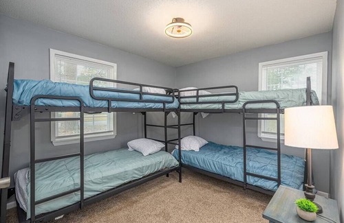 Welcome to The Coastal Retreat! This three bedroom two full bathroom with laundry room can sleep 12! Don't let the Murphy bookshelf fool you, step into the massive lounge room or easily close the barn door to create a private 4th bedroom. If you are seeking a quiet getaway 20minutes to heart of Savannah or 10minutes to Pooler, look no further! Nestled in a neighborhood yet easy access to major highways. Fully furnished,BIG fenced backyard, driveway for parking, FREE WIFI, Pet friendly with fee.