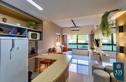 Located in a beachfront Apart hotel, on the Carnival circuit of Salvador, our apartment features a kitchen equipped with all the necessary utensils for you to feel at home. Additionally, we offer high-speed Wi-Fi and a workstation so you can work comfortably during your stay.