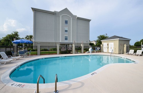 Located in Myrtle Beach, Comfort Suites Myrtle Beach Central is in the city center and near the beach. Whispering Pines Golf Course and Arrowhead Country Club are worth checking out if an activity is on the agenda, while those looking for area attractions can visit NASCAR Speedpark and Pavilion Nostalgia Park. Myrtle Waves and Mount Atlanticus Miniature Golf are also worth visiting. Spend some time exploring the area's activities, including golf lessons, parasailing, and golfing. A fitness center, coffee/tea in a common area, and a seasonal outdoor pool are available at this smoke-free hotel. Free WiFi in public areas and free self parking are also provided. Additionally, a business center, conference space, and concierge services are onsite.