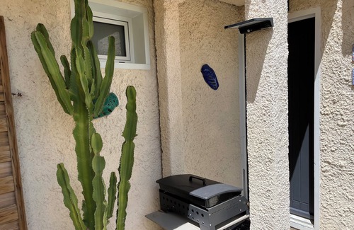 5 sleeps with 2 bedrooms and living room, 50m2 + terrace, 1 double bedroom, 1 bedroom with 2 single beds, living room with sofa bed, 2 bathrooms with shower, kitchen, terrace garden. The apartment is equipped very comfortably with air conditioning, washing machine, dishwasher, flat screen tv, stereo chain, microwave. The apartment is on the ground floor of a house in a quiet, wooded area, the little train of Balagne stops about 250m and takes you to all the nearby beaches between Calvi and Ile Rousse. You will find small shops (supermarket, bakery, butcher, restaurant, cafe, ice cream parlor, newsagent, hairdresser,