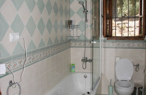 Cortijo El Pino is a large, well positioned, modernised and comfortably furnished farmhouse set around a traditional Andalusian courtyard (patio). It sits in its own olive grove (with fruit trees) within the Adelantado community of olive growers and only 1km from the main road through the Subbetica National Park. Being only 7km from the ancient town of Iznajar with its 32km lake, less than an hour from the coast and Malaga, and not much more from Granada and Cordoba, you are ideally situated to combine relaxing on your own terraces and by the pool with exploring what the area has to offer. There are shops, bars and a restaurant within 1.5km which can be accessed by road, or cross country on a footpath. The beach at Iznajar has a restaurant bar. The pool's solar heating means that it is usually comfortable to swim from May to October. Electrical heating can be added for may/June or October for an additional cost. 10MB Wifi is available free.