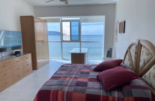 Beautiful beachfront apartment on the Acapulco Bay, direct access to the beach. Ideal for vacations or remote working, with wifi, terrace and a magnificent view. 3 bedroom, 3 bathroom, equipped kitchen, laundry room, linens and towels. Large pool, sundeck with umbrellas. Gym, entertainment room with billiard, ping pong, air hockey. 24 hour security. 2 elevators, 3rd floor. Clean, comfortable, spacious.
