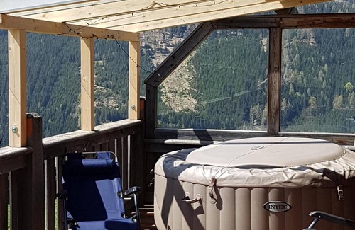 The holiday house is a recently completed self-catering chalet for up to ten people (150m²). The solid wood furniture was made by a carpenter and exudes rustic charm. The cosy living room-kitchen with a big sitting corner provides plenty of space for you and your family or friends. The centrepiece is the wood-burning stove, like in past times. It provides pleasant warmth and romantic hours in the evening, and you can also cook on it. An electric hob, dishwasher, fridge, sink with warm water, sofa, radio, satellite TV, DVD player and video recorder are also provided for your convenience. The four bedrooms have solid wood furniture. The cosy canopy bed exudes an imperial holiday feeling. After an exciting day, you can relax in the arolla pine sauna. The adjoining Whirlpool (warm and cold water) on the big terrace rounds off a perfect holiday day. The house has two bathrooms with a shower, washbasin, WC and electric boiler. Bed line is provided.