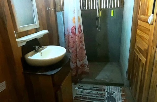 Studio Casita 2 | The casita offers a private bathroom, a queen bed or (2) single beds and shelves. It also has a jungle facing deck outside, perfect for relaxation, meditation, yoga and connecting to nature! We offer FREE morning yoga to all our guests who stay with us at Alya. Property offers Starlink fast internet. The casita here at Alya Retreat Center is perfect for people who want to connect with nature in peace and comfort. A very comfortable and cozy space! We have drinking water straight from our spring and the space is a short drive to many beautiful beaches. We have free morning yoga at 7:30 am. We offer a daily, healthy vegan/vegetarian breakfast at our jungle cafe from $12 from 8.30am-10am. Laundry service is available throughout your stay for $10.00. A healthy vegan/vegetarian breakfast inc. all organic greens, tahini, hummus or a tasty granola bowl and more is available upon request. Guests also can receive a free ride to the beach and back once a day for no extra charge. We have a large 19-acre property so feel free to wander the paths and explore the place! Be sure to head up to the mirador to catch an amazing sunset over the ocean and gaze at the amazing stars! The yoga shala is free for guests to use throughout the day - Please say hi to our two lovely dogs, Flor and Chiva who often like to hang out there! The main casa above the yoga shala is my private home. I often invite guests round to relax and enjoy the space, but it is otherwise out of bounds! Thank you for your understanding. A 4x4 is highly recommended to reach our place and explore the surrounding area. Feel free to ask us about the local tours/excursions available that we can organize. We also have a space for a campfire here at Alya Retreat Center so please ask if you'd like us to get one going one evening! House rules: You must contact prior to booking if you would like to use the space for events, please keep music to reasonable levels (especially at night!), no alcohol, no meat (vegetarian food only) and preferably no smoking on the land. There will usually be someone on site should you need anything but in the event no one is available, feel free to send a message via phone or email and we will get back to you as soon as we can! We can give recommendations on places to visit and will do our best to make sure you have the best stay possible!