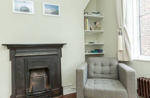 This second-floor apartment (no lift) is situated in a charming red-brick building. It offers two spacious and comfortable double bedrooms with ample storage and double beds dressed in crisp hotel-quality linens. The bright living room features large windows, modern furnishings, and a TV, creating a welcoming space to relax. The fully equipped kitchen includes all the essentials for home-cooked meals, such as an oven, hob, fridge/freezer, kettle, toaster, cookware, and utensils. For an additional guest, a sofa bed in the living area can be prepared before your arrival for an extra fee (please select 5 guests when booking). The family bathroom includes a bath, shower, and complimentary toiletries for your convenience. The perfect central London base!