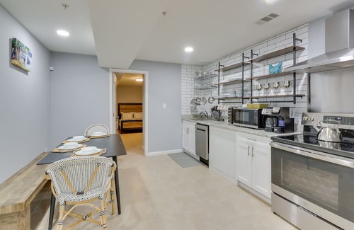 Modern Interior w/ Stainless Steel Appliances | WFH Desks | Electric Fireplace | 1,000 Sq Ft