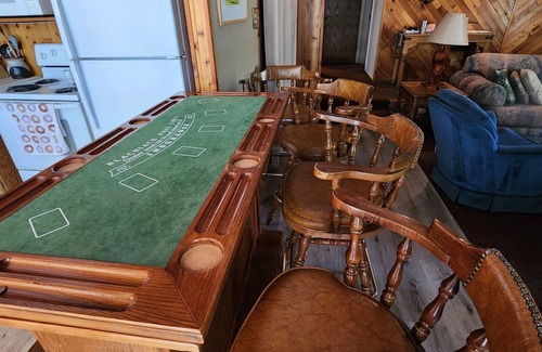 Conveniently located, this mountain home is nestled in the forest above the center of Graeagle within walking distance of the grocery store, and Mill Pond, shops, horse back riding and more. There is plenty of parking. Amenities include a fully equipped kitchen and all towels and linens. You can barbeque and party on the large deck and retire to the game room and regulation pool table.