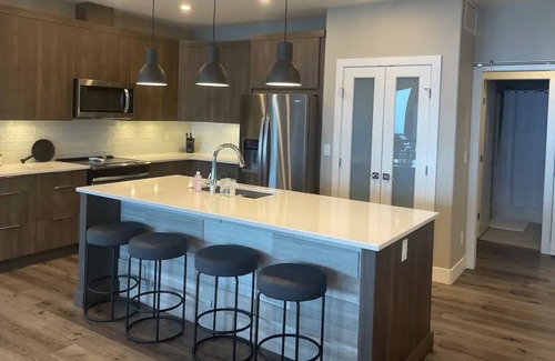 Brand new corner lakeview Condo on the 3rd floor overlooking the Okanagan lake. Master bedroom with King Bed and 2nd bedroom with Queen Bed.
