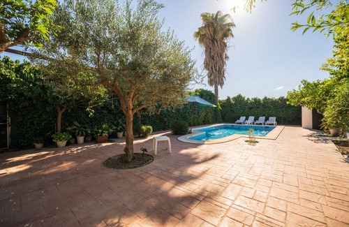Family-friendly rural house with 3 bedrooms, 1 bathroom with shower plus outdoor toilet, private pool 6m x 3,5m, barbecue, and parking.