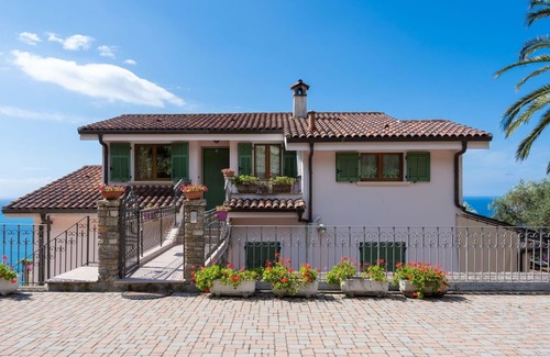 Very beautiful, comfortable 2-family house "Villa Ginestra", 2 storeys. 2.5 km from the centre of Ventimiglia, 5 km from the centre of Bordighera, 13 km from the centre of Menton (Côte d'Azur), in a secluded, sunny, elevated position on a slope, 2.4 km from the sea, in the countryside. For shared use: large, well-kept terraced garden, 5'000 m2 with plants and trees. Private: swimming pool (above ground) (4 x 2 m, depth 120 cm, seasonal availability: 15.May. - 15.Oct.). Pergola, garden furniture. 150 m long steep motor access. Stepped path to the house. Roofed, parking (for 2 cars). Shop 1.8 km, supermarket 2.5 km, restaurant 1.8 km, railway station "Ventimiglia" 3.5 km, sandy beach 2.4 km. Marina 9 km, golf course (18 hole) 25 km. Please note: the owner lives in the same residence.
