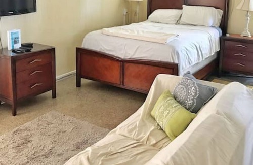 Our River View Cottage offers a full kitchen with a fridge, oven, microwave and coffee maker. The studio style area has a comfortable queen size bed, a relaxing living space and a full size bathroom. There is an attached covered carport for parking convenience. The cottage has comfortable bedding and linens along with the essentials you will need for your stay such as beach chairs and towels. We will do whatever we can to accommodate your needs and make your stay more comfortable.