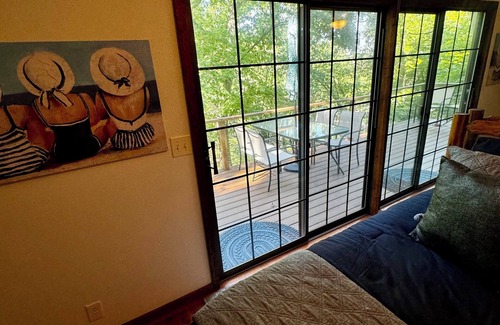 Stay with us, nestled in the trees, and you're minutes away from Golfing, Boating, Pickle Ball, Casino, Winery, and Fine Dining. Come and enjoy the beautiful lake view from our two story deck, which is steps away from your own day dock. Parking for 4 vehicles, this house is located on a large wake-free cove next to Port Duncan. This is a 3,880 sq ft two story, newly renovated, and perfectly equipped and furnished A-frame house with 4 bedrooms, 4 bathrooms, 2 living areas, kitchen, and dining areas on both decks. There are 3 bedrooms to sleep 6 adults, with a bunkroom for up to 8 kiddos including 2 twin-over-full bunkbeds and a day bed with trundle bed. The household entertainment includes 3 TVs, pool table, card table with games, books, Wi-Fi, and unlimited swimming!