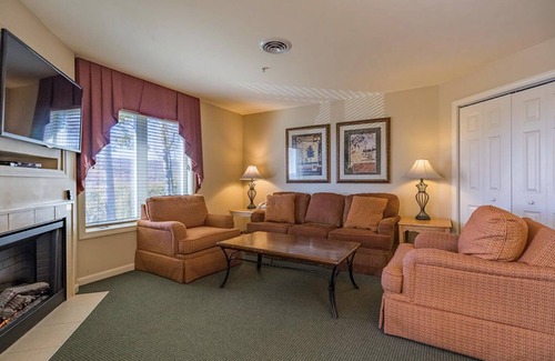 This amazing 1-bedroom resort in Hancock is perfect for your mountain escape. With a king bed, fireplace, a convenient sofa bed, private balcony, washer/dryer, and your own kitchen, guests can relax in this cozy and spacious home away from home.