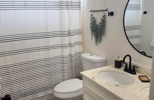 Located in Hemet, this house is a dream. With 2 tranquil bedrooms featuring 2 queen beds, guests can unwind in a welcoming atmosphere. The property also offers 2 bathrooms equipped with essential amenities like a hair dryer and shower. Whether you're looking for a peaceful retreat or an enjoyable getaway, this cozy house has everything you need. We're happy to assist with any questions while you stay at our house.