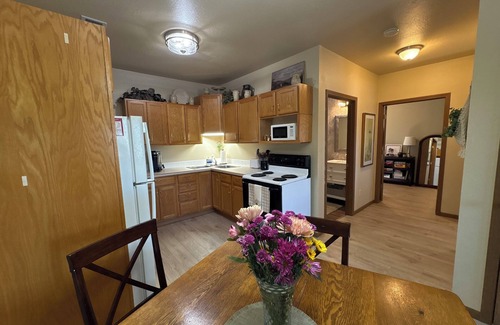 Consider this newly renovated apartment your home away from home while you visit Omro. This fabulous rental features 2 cozy bedrooms - one with a queen bed and the other with a bunk bed. With spacious views of the Fox River, the living room is the perfect place to enjoy your morning coffee or wind down from your day. The fully stocked kitchen gives you the flexibility to cook your own meals or bring tasty leftovers back for late night snacks. The dining room table is great for gathering or playing games! And let’s talk about location…within walking distance to local events, farmers market, Fox Lanes, restaurants, parks, and more! We are a short drive off of Hwy 41 in Oshkosh and a perfect place for your EAA stay, Packer Game travel, girl’s weekend, romantic getaway, or home base for daily excursions while you explore Central Wisconsin, including Door County. We're happy to assist with any questions while you stay at our apartment.