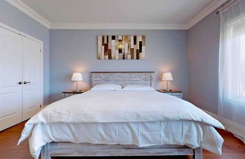 Experience comfort and entertainment in our 4BR house with a fire table, on-site BBQ, pool table, and foosball. The master bedroom has a Queen bed, Bedroom 2 has a King bed, and Bedrooms 3 and 4 offer Queen beds. Enjoy a 65-inch smart TV, high-speed internet, and two clean bathrooms. Your perfect getaway awaits!