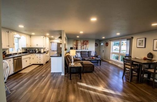 Large Living Room with sectional sofa, Pub Table and Gas Fireplace. Spacious kitchen with all the amenities you will need for your stay. Two Bedrooms on Main level have King size bed and its own TV. Bedroom in Lower level has a Queen Bed, and also has its own TV. New Large Family Room recently added to Lower level with TV, small electric fireplace, Pub Table and mini-fridge. Office Space also available in Lower level.