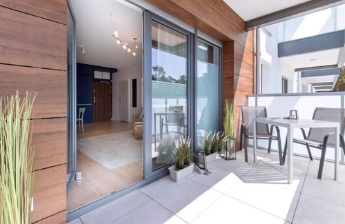 Escape to comfort at Blue Sea in Pogorzelica, a stylish one-bedroom apartment offering a peaceful retreat by the coast. Enjoy a spacious terrace, free WiFi, and convenient amenities including a balcony, kitchenette, and washing machine. Inside, you'll find a cozy dining area, a sofa bed, and a fully equipped kitchen with a dishwasher, microwave, and coffee machine. The apartment also features tiled floors and outdoor furniture for relaxing moments outdoors. Free private parking is available on-site for your convenience.