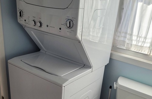 Amenities include central heat/air and ceiling fans, complimentary wireless internet access, and cable TV which rotates to be seen in both the living and bedroom. Stack washer/dryer.