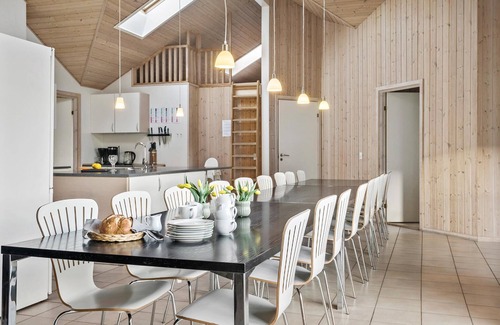 It is rare to find a holiday home with as much space as this one. What's more, this extremely spacious holiday home is just a short walk from the nearest sandy beach in Marielyst on the island of Falster. You can also look forward to a variety of activities that promise an entertaining stay for a larger group of travellers or several families. In the modern, open-plan kitchen, you can start your day by preparing breakfast for the whole party. The first lively plans for the day's holiday activities are sure to start at breakfast at the long dining tables. The numerous seating areas also offer the opportunity to chat. Or how about a game of pool, table tennis or air hockey? You can also relax in the pool, whirlpool and sauna.