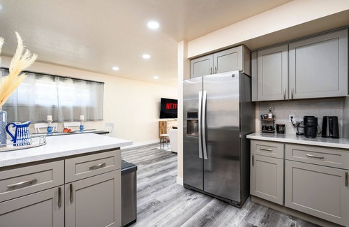 Endless warm weather and beautiful beaches make Huntington Beach an ideal place for a vacation. This spacious home has all the charm of a beach retreat with all the modern amenities, including central AC, a fully equipped kitchen, and appliances. This 4 bedroom 2 bath comfortably sleeps 8 and a short drive for dining, shopping, and the beach which is truly a gem for you in 30s or families or business people around the world to get together to work and relax!!
