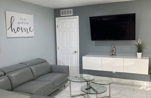 My cozy condo has all new furniture and contemporary stuff, stainless still appliances, we have a little bar with all the wine glass,