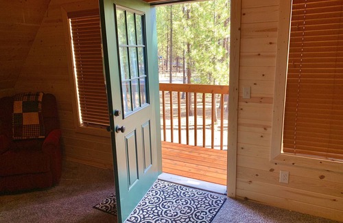 There is a large Sundeck w/ a picnic table & benches where you can enjoy outdoor meals-- including BBQs on the Treager. Or you may prefer to just relax in the Adirondack chairs w/ your favorite beverage, surrounded by the ponderosas. There is a propane firepit to enjoy evenings outdoors (Guest is responsible for purchasing propaned but tanks are provided).