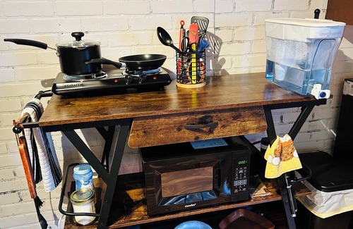 This peaceful and private studio cabin is the perfect home base for your trip to Fenton. With a cozy bedroom featuring 1 full bed/day bed and 1 twin bed, guests can unwind in comfort. The bathroom is equipped with a large shower, soaps, towels, and a hairdryer. A fully stocked kitchenette with mini fridge, microwave and hot plate is ready for quick meals. An office nook with high speed internet, desk, ergonomic chair, and 45” Apple TV with free cable and streaming options. You will have your own private front porch and patio with charcoal grill and outdoor seating. You’ll also have access to the front property woods and fire pit. Whether you're looking to relax inside or explore the area, this quaint cabin has everything you need for a fantastic stay. Fall in love with Fenton and enjoy the magic it has to offer.