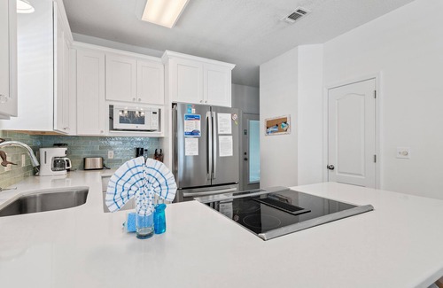 Walk to the beach! Our Summer House is a delightful 3 bedroom, 2 bath pet friendly home located only 4 blocks from the sparkling Gulf waters. With a king-size bed in the master, a queen in the second bedroom, two twins over full bunk beds in the third, this house sleeps 10. This lovely home is completely renovated with a gorgeous kitchen with granite and stainless appliances, a grill outside, a beautiful wrap-around porch, and is only a few stepsdown from the community pool!There's plenty of parking for 2 vehicles, a grill, and a washer and dryer for your convenience.Make memories of a lifetime at Our Summer House!