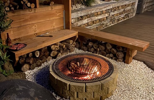 Outside there is a front deck with table and chairs with an elevated view over trees and there is a private under cover patio area out the back with table and chairs, firepit with grill over the fire for those juicy steaks and BBQ. Outdoor areas are quiet and peaceful. Back garden is secure and fully enclosed and suitable for dogs.