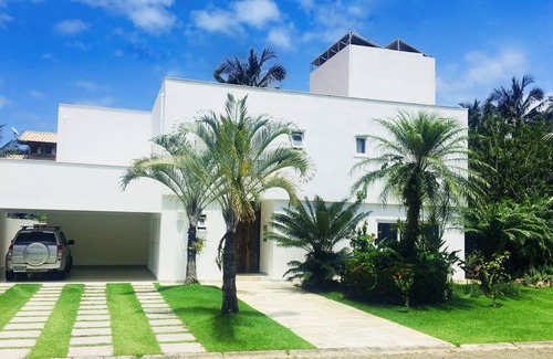 The design house was designed by the architect Paulo Fecarotta and decorated with works of art and comfortable and functional signed furniture. The house is located in a gated community with 24 hour security, combines the tranquility of the countryside with the bustle of the beaches in a luxurious, comfortable and safe environment 100 meters from the beach. The condominium has a large wooded area with waterfalls and a natural pool within easy reach.