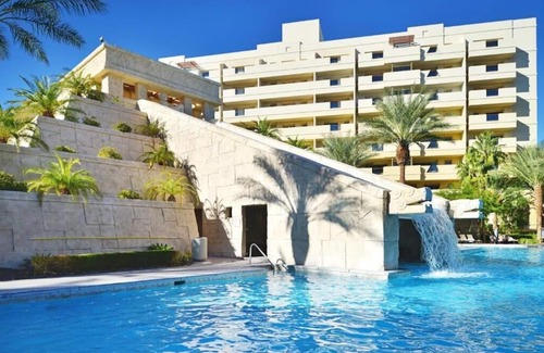 Located just south of the famous Las Vegas Strip, Cancún Resort Las Vegas offers a retreat from the non-stop action of Sin City. Leave the crowds and the noise behind, and relax under a shady palapa in a hammock by the pool. Enjoy spacious and comfortably appointed villas and penthouse suites, or spend a day being pampered at the on-site spa. With a Mayan pyramid waterfall and four water slides, Cancún Resort Las Vegas is a true desert oasis for the whole family to enjoy.