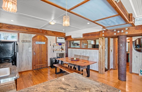 The modern kitchen comes fully equipped with everything you could need to cook up breakfast lunch and dinner and even has its own view of the ocean while you cook and wash up. There is a full-size fridge/freezer, a freestanding oven and cooktop, a microwave and a coffee maker to get your day started right.