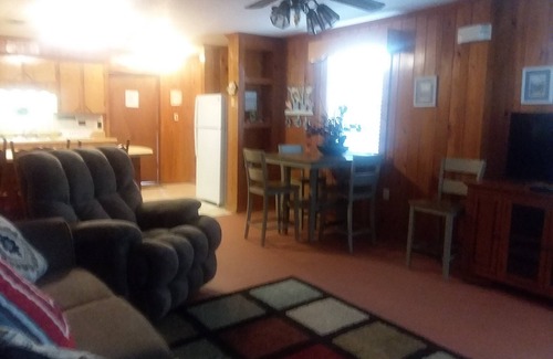 2 Bedrooms (1st: queen and twin; 2nd: queen; living room full sofa/sleeper) and boat dockage just outside your door. Fully furnished apartment with furnished kitchen (everything you need execept your food) and one full bathroom (linens and towels supplied), screened fish cleaning area with charcoal grill. Rental is on ground floor. No flights of stairs to go up and down Grab your friends and head to Keaton Beach for !!
