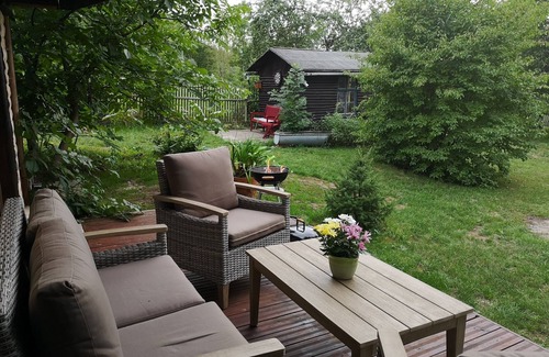 Cozy holiday home + plot (1200sqm) for 2 people, directly on the Ilmradweg, near Tiefurt Castle and Park, downtown Weimar 2.8 km away.