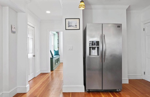 Upstairs we have four warm bedrooms, each with their own style. With plush beds, soft linens, and ample storage space, each bedroom was designed to be comfortable for guests staying one night or one month. Two of our bedrooms also have desks. With our fast (500mbps) Wi-Fi, it's easy to get some work done (even though we doubt you will want to!). Summer evenings are cool in Maine so we do not have central air but window AC units and fans are installed in each bedroom to satisfy even the warmest sleeper. Our rooms were designed so you can wake up rejuvenated, ready to embark on new adventures in the morning.