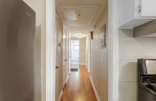 Upon entering the house you will find an inviting living room with original hardwood floors, a large Pottery Barn sectional, two armchairs, a coffee table with reading material, and a large wall-mounted smart TV with all the popular streaming apps you'll need.
