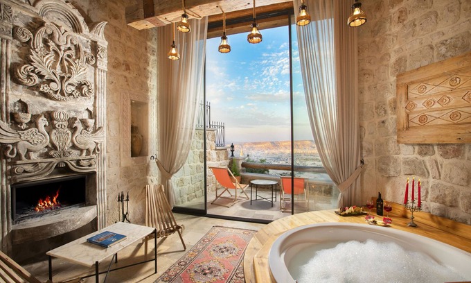 Best-rates for the Uchisar hotel starts from $382 per night with includes Restaurant, Guest Services, Balcony/Terrace, Accessibility, Fireplace/Heating, Bar, Entertainment, Laundry, Designated Smoking Area, TV, Sports/Activities, Breakfast, Bedding/Linens, Toiletries, Internet, Kitchen, Air Conditioner, Other, Wellness Facilities with all other facilities. Casai matches every traveler with their perfect accommodation, whether you are traveling with a group, friends, family, or pets.