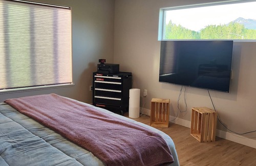 Welcome to this charming house in Palmer with AMAZING VIEWS from the house and large deck! This wonderful vacation rental is perfect for guests seeking a cozy and enchanting getaway. With 1 bedroom, a living room with 2 twin beds (upon request), and a luxury bathroom with a shower that accommodates 2 people for that romantic "getaway"!