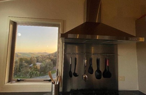 Appliances include a modern gas stove, fully kitted out kitchen, and other essentials for a healthy, peaceful stay. The house comprises a modern bathroom, fully furnished bedroom, lounge and kitchen, and the grounds open up to 18 acres of Manuka bush with paths carved in to allow you to travel to a new world of flora and fauna.