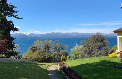 Discover a serene retreat offering breathtaking lake and mountain views just 1.6 miles from downtown Bariloche. Explore Civic Center Bariloche's cultural charm or hike the scenic trails at Otto Hill. Unwind in the heated indoor pool, jacuzzi, or garden after water activities at Nahuel Huapi Lake.