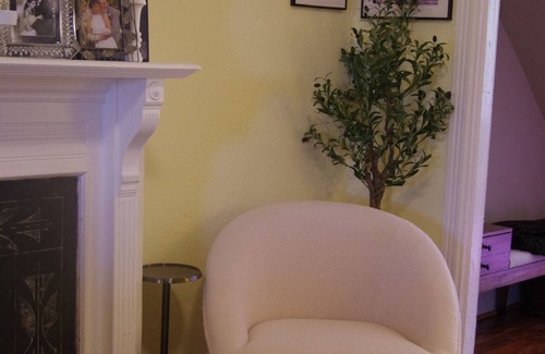 This is a 3-bedroom house but two are being used as offices, one with a Spaze sofa bed, 1 large bathroom with large tub/shower, a 1st floor powder room, living area within the kitchen area, large front room with large dining table and nook seating area. The laundry is in the clean basement and the washer/dryer is clean and a lovely patio area in the back. Everything is here-linens, kitchen equipment, office supplies, toiletries, etc. And for those who like to cook, I offer a FULL range of spices and higher end pots and pans. There is a desk in each of the two upstairs offices. Much of the house has been renovated but still retains the charm of the early 1900s with original red pine flooring, two mantels and all the rest. This is a non-smoking home for all items that make smoke.
