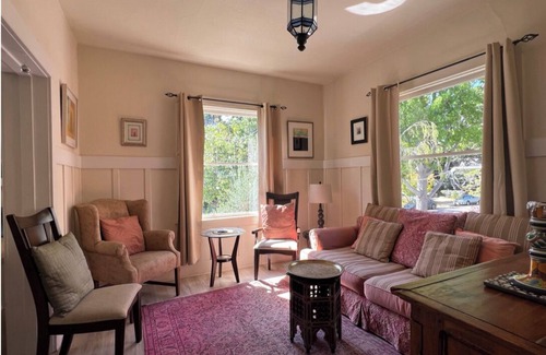 Our home is walking distance to cafes, restaurants, and movie theatres. We are located in Central Berkeley: walk to the downtown Berkeley BART station in 15 minutes. Living room, dining room and laundry. Enjoy the large, sunny deck and baby grand piano. Our home is good for couples, business travelers, and families (with kids).